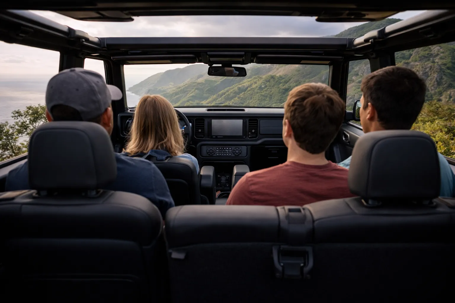 On most open-top Jeeps, rear passengers often struggle with limited visibility. However, our Broncos are designed differently. Specifically, the forward-facing layout ensures every guest enjoys a clear panoramic view. Additionally, when we pause at scenic overlooks, you can comfortably stand inside the vehicle. Consequently, the Bronco becomes a mobile viewing platform that maximizes every photo-worthy moment.